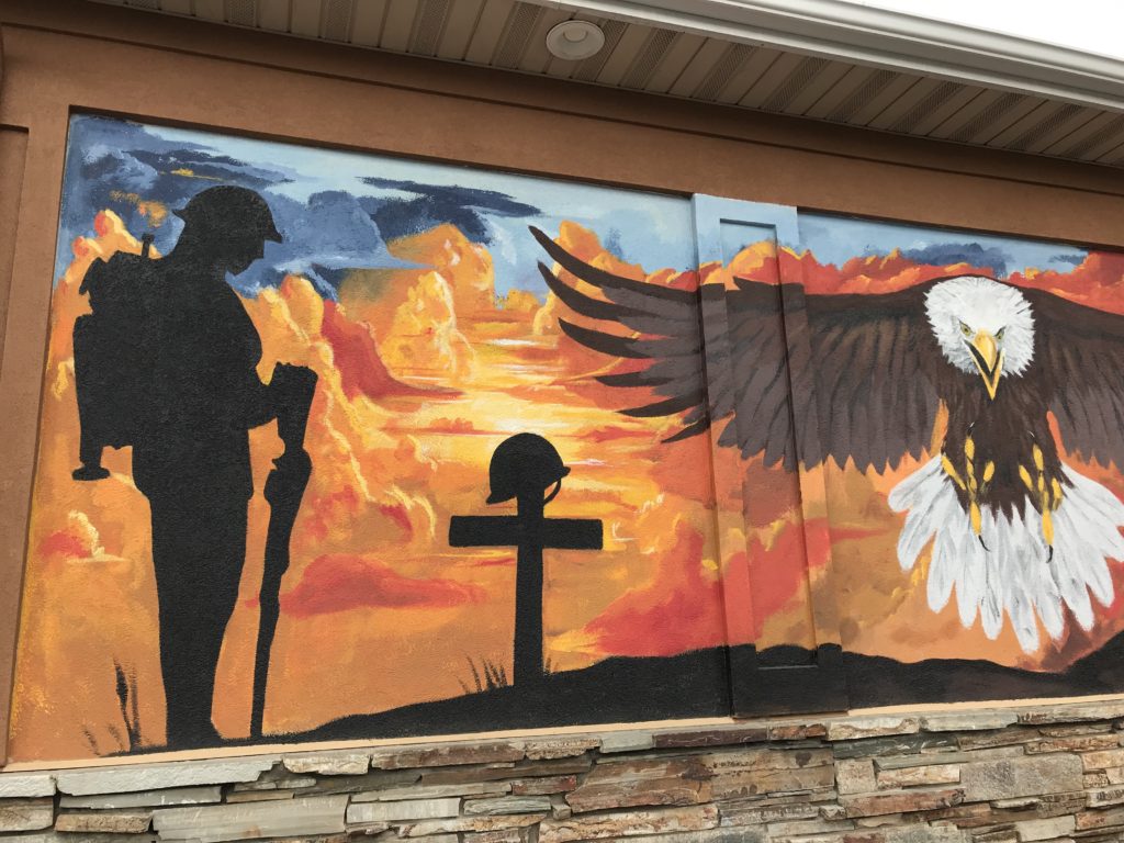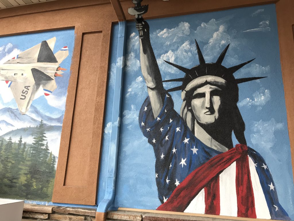 Jacob Fernandez has been working on the murals at Mountainland One Stop all summer long. His murals depict patriotism on the south end of the building, with a combination of images of the Statue of Liberty, Eagle, and an American Soldier.