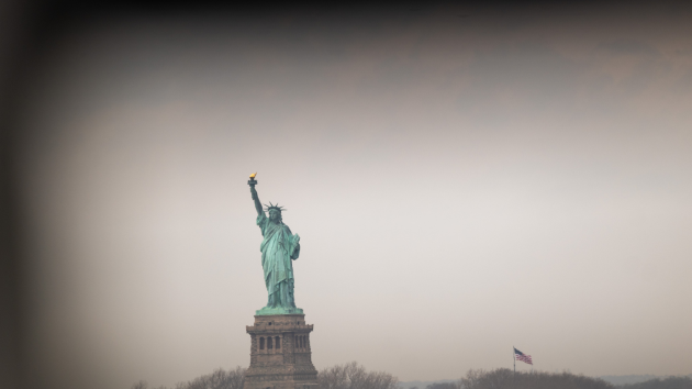 The Statue of Liberty stands in New York Harbor on April 03, 2025, in New York City. Markets worldwide have plunged following President Donald Trump’s latest announcement on tariffs. In a move that has caused controversy among both Republicans and Democrats, Trump announced sweeping new tariffs on major U.S. trade partners. (Photo by Spencer Platt/Getty Images)