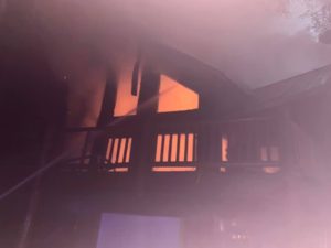 Wasatch County Fire Department reported that crews were in Timber Lakes Sunday, October 20th based on a page at 6:55 pm, of a chimney fire in a cabin. Upon arrival in Timber Lakes, crews found a fully engulfed cabin fire in the same area at 7:19 pm. Upon arrival they attacked from the outside and other engines from Heber arrived to assist. They were notified by dispatch that, as per the homeowner, there was not anyone inside the home. It is believed that the cabin is a total loss. Crews remained on scene during the night and the State Fire Marshal’s office has been notified and will arrive later this morning for investigation. Photos by Wasatch County Fire.