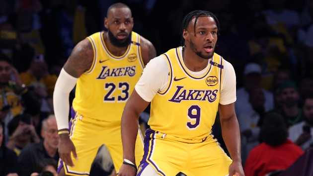 (LOS ANGELES) — Los Angeles Lakers star LeBron James — the NBA’s all-time leading scorer — and his son Bronny James make NBA history Oct. 22, taking to the court together as the Lakers faced the Minnesota Timberwolves in their season opener.